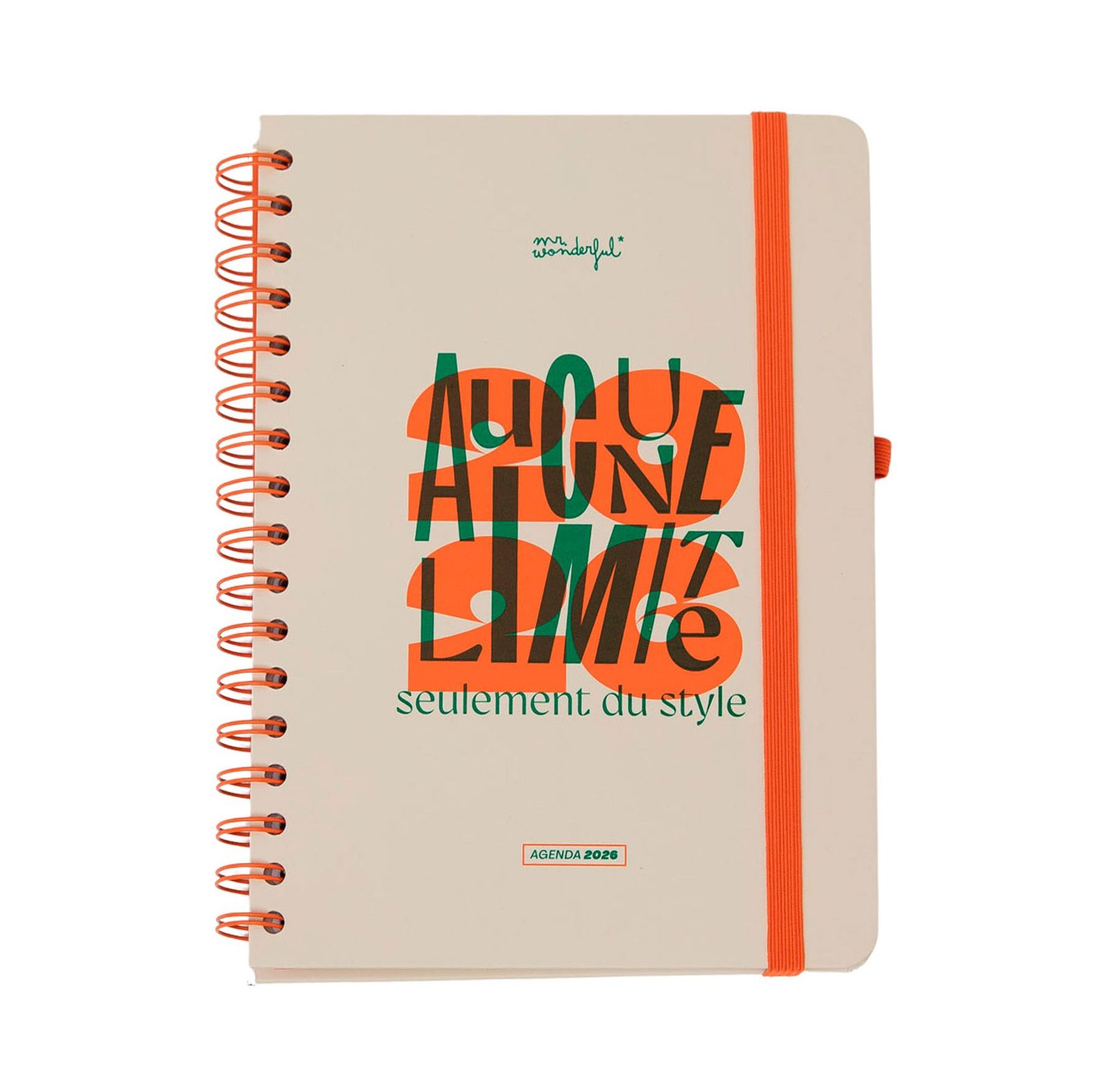 On craque sur les agendas fun et colorés de la marque espagnole Mr. Wonderful ! Cet agenda hebdomadaire (janvier à décembre 2026) est idéal pour vous organiser facilement pendant cette nouvelle année scolaire en vous donnant la patate. Design « Aucune limite, seulement du style ».