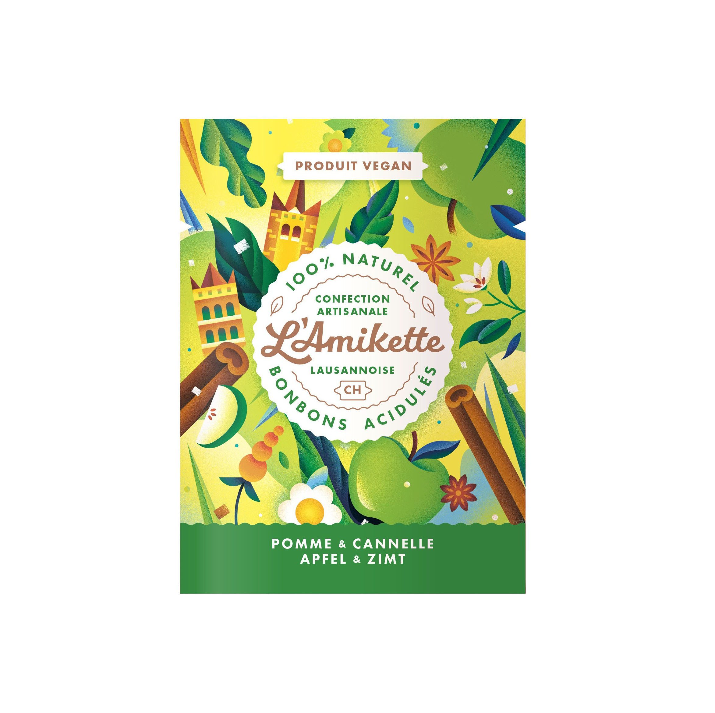 Les bonbons de L’AmiKette sont soigneusement confectionnés à Lausanne (Suisse) et composés de fruits frais de saison. L’idée est de se faire autant plaisir qu’avec un bonbon industriel, mais d’une façon plus saine avec de bons produits. Krystel, la créatrice, utilise un procédé par déshydratation à basse température pour la confection de ses « fruiandises », ce qui permet de conserver un maximum de bons nutriments présents dans les fruits frais. L’ajout de sucre acidulé qui enrobe le produit fini nous rappelle les langues de chats ou les lasagnes, le tout sans ingrédients chimiques ni gélatine ! Ce mini sachet contient 20gr de délicieux bonbons (vegan).