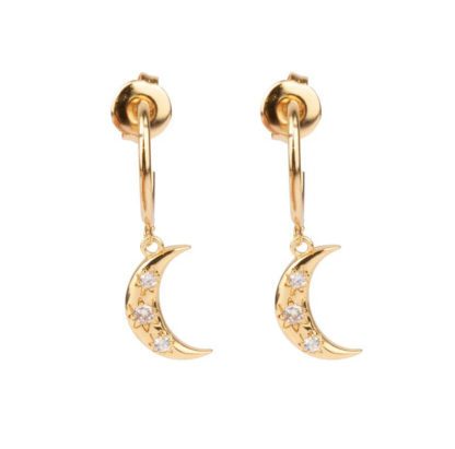 La marque hollandaise All the Luck in the World nous ravit avec ses jolis bijoux si féminins et délicats ! On craque complètement sur cette collection Aimé avec ses petits cristaux de zircon colorés. Ces boucles d’oreilles lune sont parfaites pour offrir à sa chérie, sa maman, une amie ou carrément les garder pour soi… Bijou en laiton doré à l’or fin 18 carats.