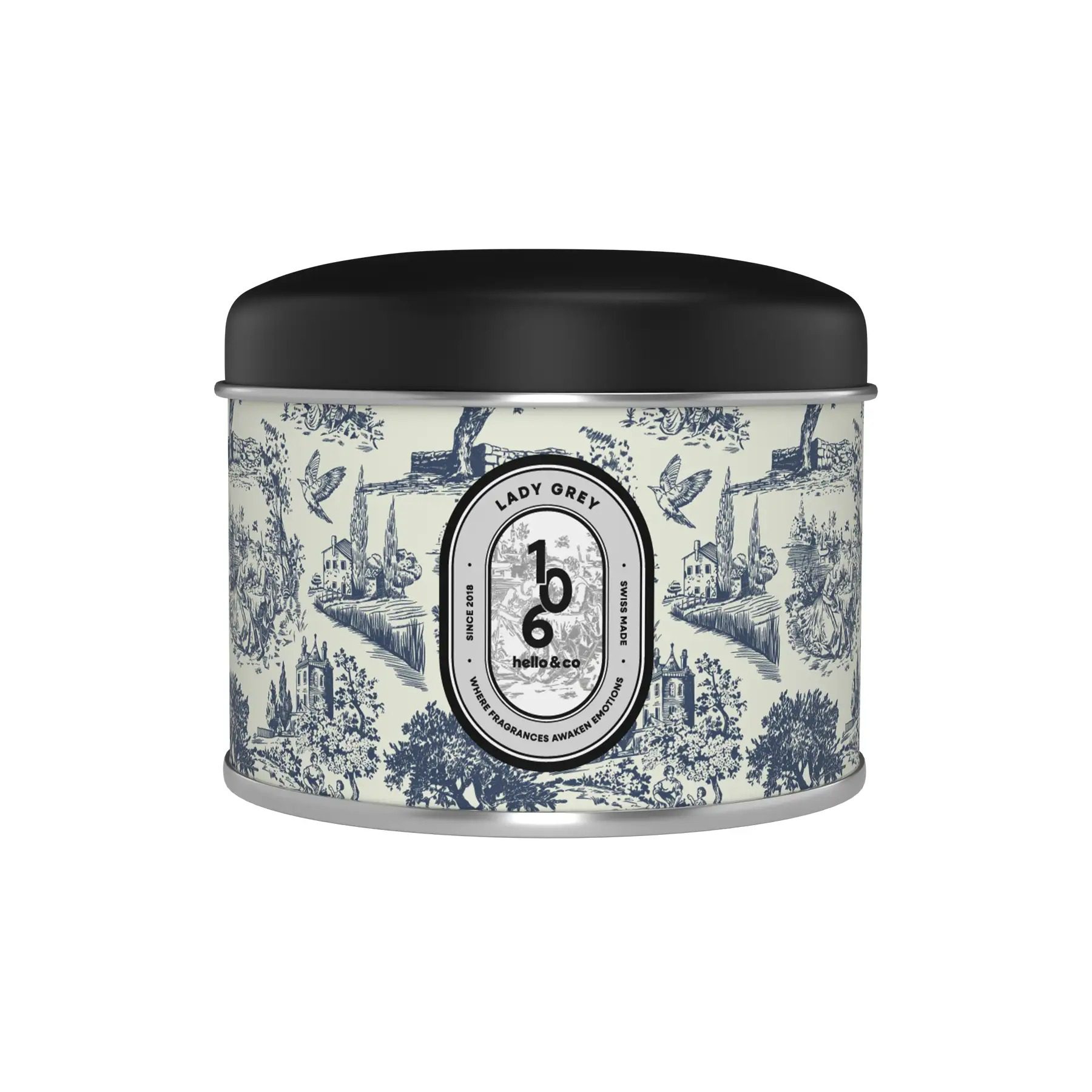 On craque pour les délicieuses odeurs des bougies parfumées de la marque suisse Hello Candle! Ici, le doux parfum « Lady Grey » pour une atmosphère cosy à la maison. La mèche en bois (bois d’érable/cèdre) crépite légèrement pour un effet cocooning garanti. Les bougies sont 100% cire de soja avec des parfums de Grasse à base d’extraits naturels, dans un beau contenant en métal avec étiquette et carton illustrés.