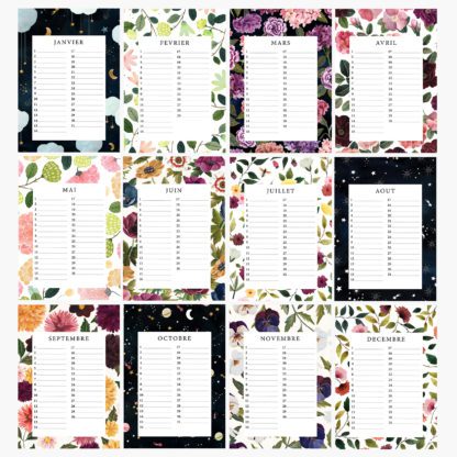 On craque pour l’univers fleuri et coloré de la créatrice française Sonia Cavallini ! Ce calendrier perpétuel est parfait pour noter tous les anniversaires de vos proches. Suspendez-le au mur grâce à sa ficelle et n’oubliez plus la fête de vos amis ou les membres de votre famille année après année… Vous pouvez également écrire au crayon vos rendez-vous et les évènements importants et les effacer l’année qui suivra. Contient 12 pages (janvier à décembre) avec un motif fleuri différent, il vous suffira de changer la page chaque mois. Dessiné, découpé & emballé en France, imprimé en Italie.