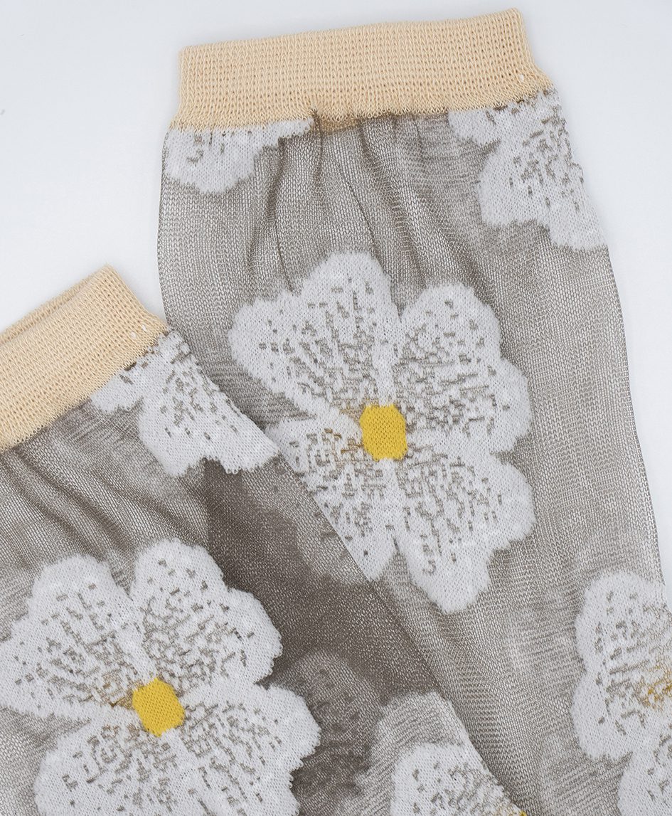 Osez les chaussettes originales et transparentes de la marque Atelier St Eustache ! Féminine et délicate, cette paire de chaussettes s’inspire des fleurs de la ville de Murano, près de Venise. Le modèle crème tout en transparence dévoile de belles fleurs élégantes. À porter avec un jean bleu ou beige, une jupe longue et des baskets, des escarpins ou des mocassins.
