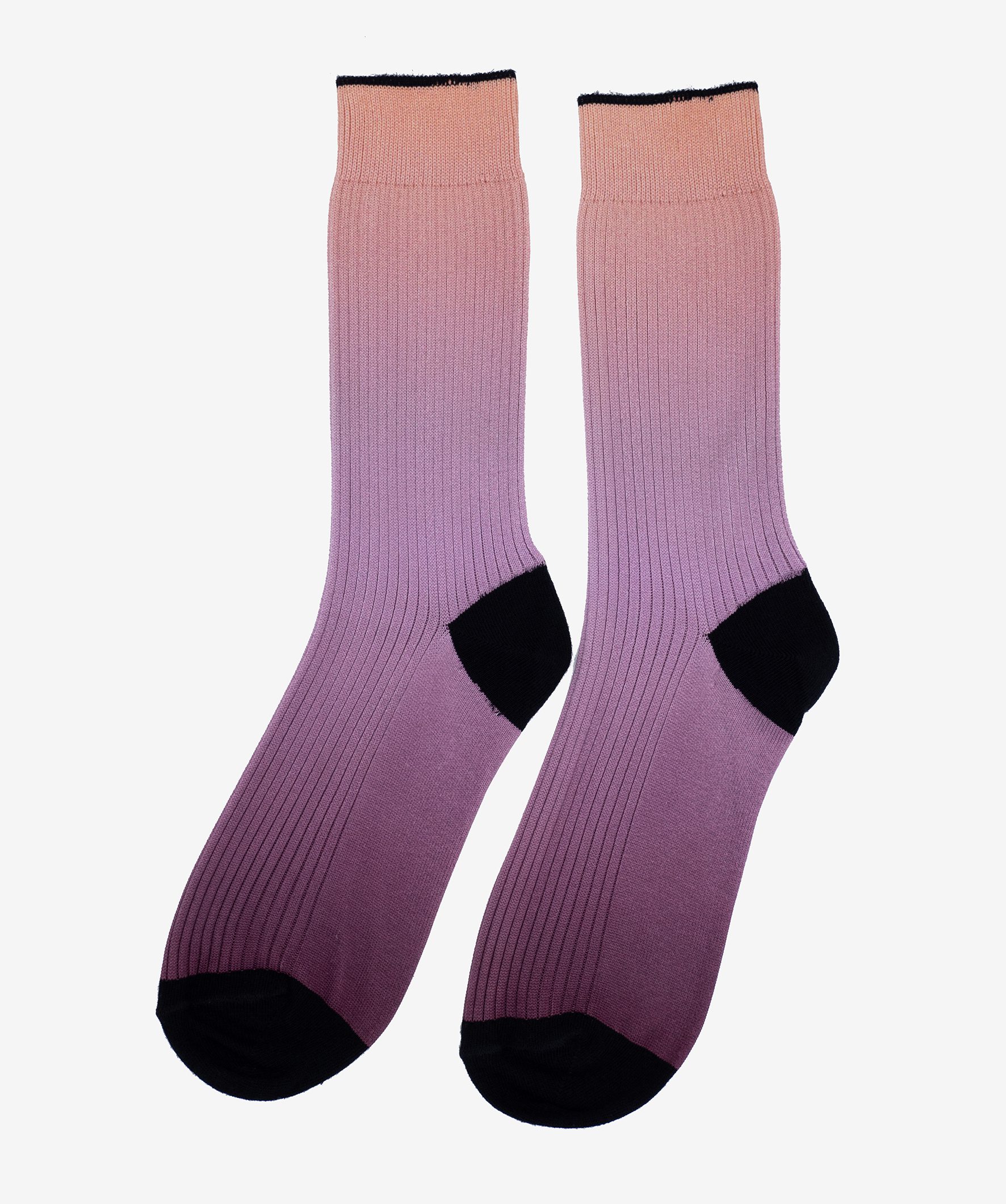 Osez les chaussettes originales de la marque Atelier St Eustache ! Découvrez les chaussettes côtelées Violet & Rose ultra douces de la collection « Panorama ». Un modèle au dégradé subtil de violet et rose, alliant douceur et confort. Leur bord-côte noir discret et leur design mixte s’adaptent à tous les styles. Pour un look moderne et affirmé, associez-les à une tenue noire, ce qui fera ressortir l’intensité de leurs couleurs.