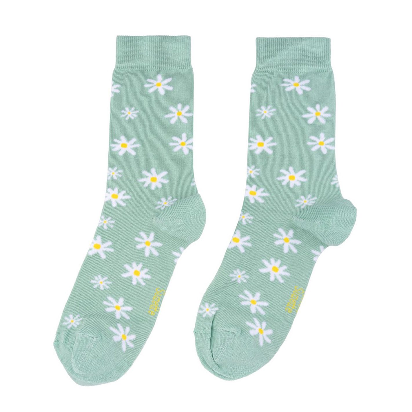 Oh, un parterre de pâquerettes à nos pieds ! Ces jolies chaussettes fleurs en coton sont couvertes d’adorables petites fleurs blanches et jaunes sur un joli fond vert d’eau. Un accessoire champêtre qui nous accompagne toute l’année, au bureau comme en vacances. Elles sont fabriquées en France et faites à partir de coton italien certifié OEKO-TEX® pour des pieds comfy à souhait. Taille unique (du 35 au 44).