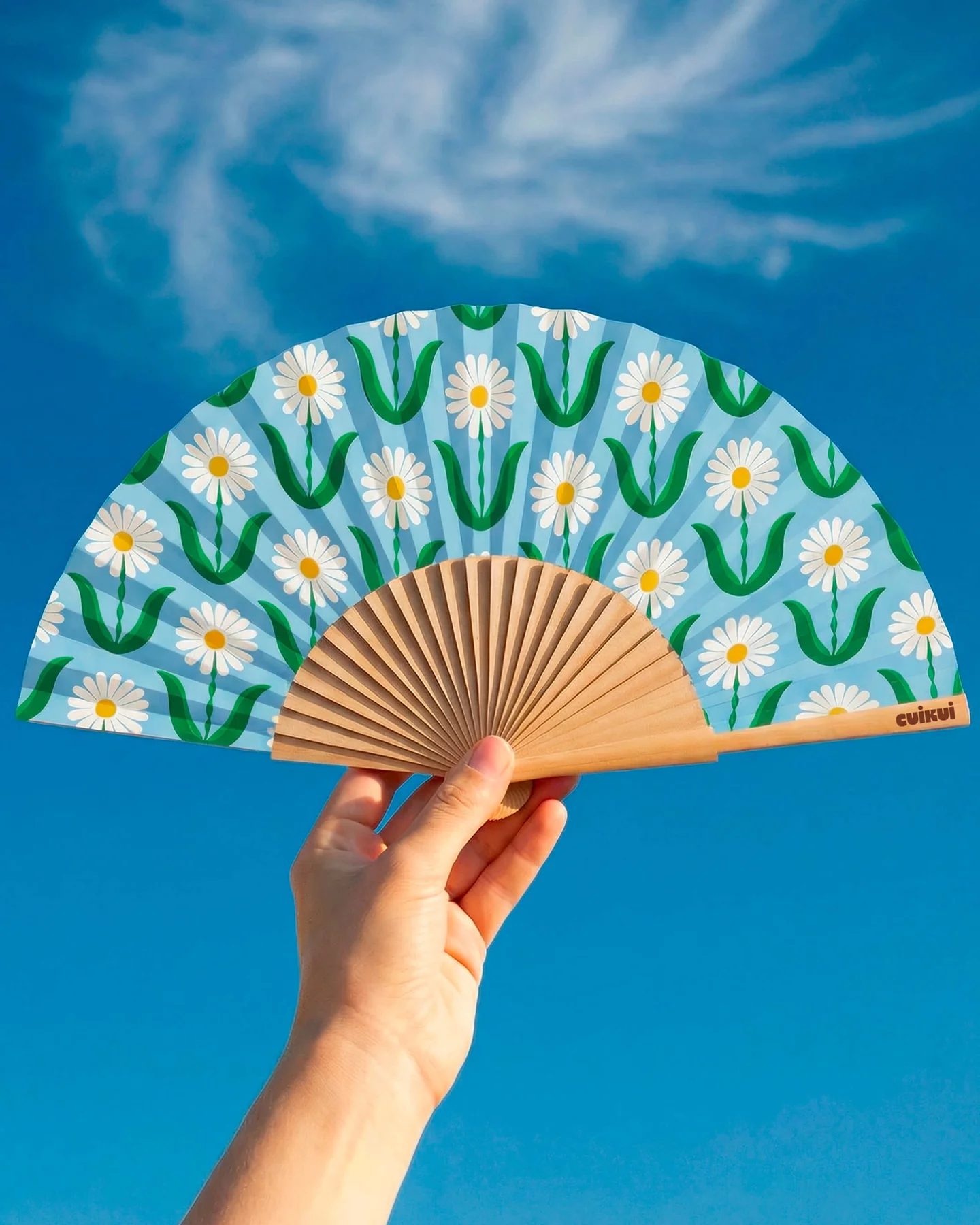 On adore les créations fun et colorées (et un brin insolant) de l’illustrateur français Thomas Gravereau et sa marque funky Cuikui ! Cet éventail « Pâquerettes » sera votre meilleur allié pour supporter la canicule estivale… Un objet utile et original indispensable en été, c’est aussi une super idée cadeau ! Bois & toile en coton/polyester.