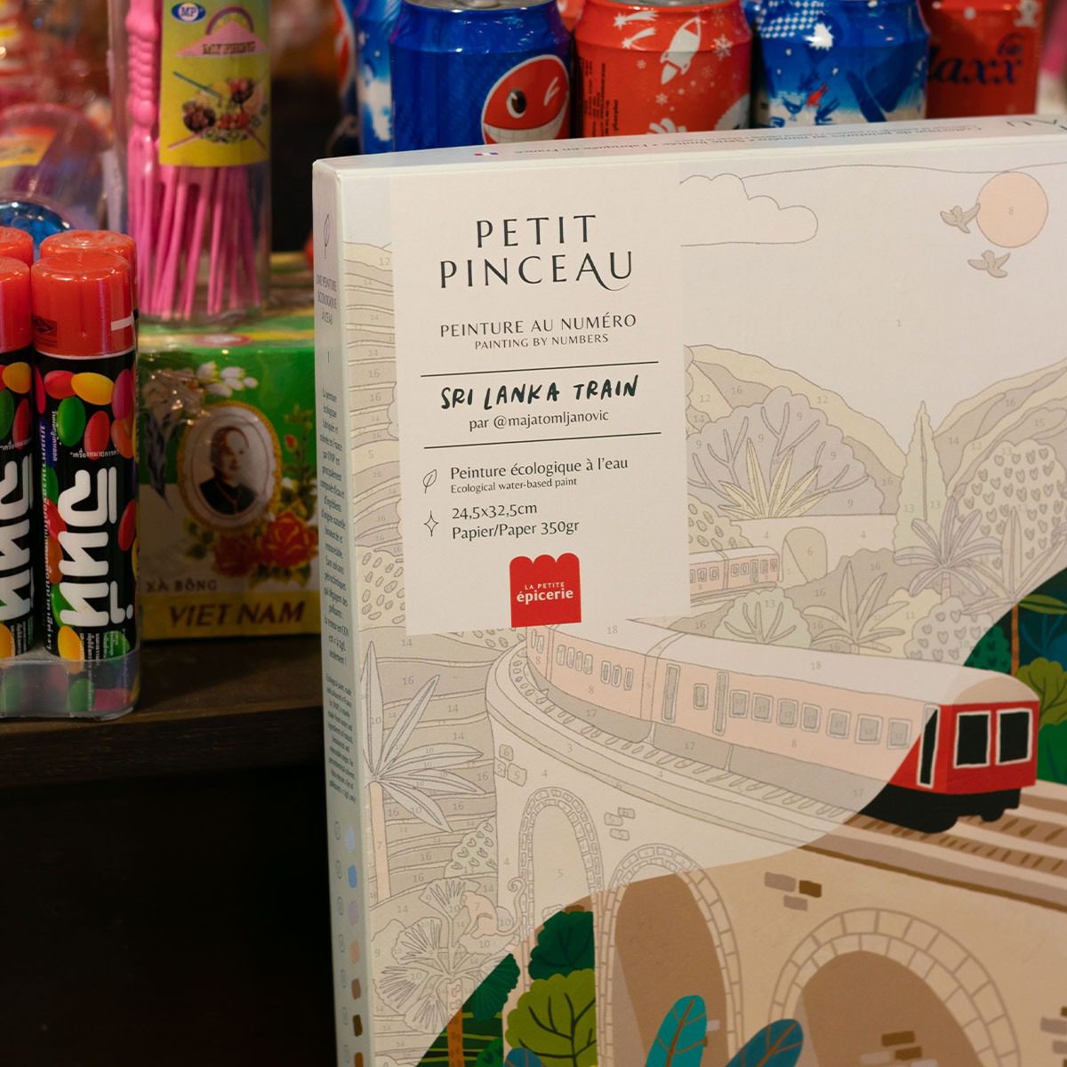 La Petite Épicerie a imaginé spécialement pour vous une jolie série de peinture au numéro, Petit Pinceau. Elle vous propose ce kit DIY peinture « Sri-Lanka Train », conçue par l’illustratrice Maja Tomljanovic. Parfait pour un moment de détente ! Et une fois la peinture terminée, vous pourrez l’encadrer et l’afficher fièrement dans votre intérieur pour une touche « handmade » ! Le coffret est Made in France. Il contient :