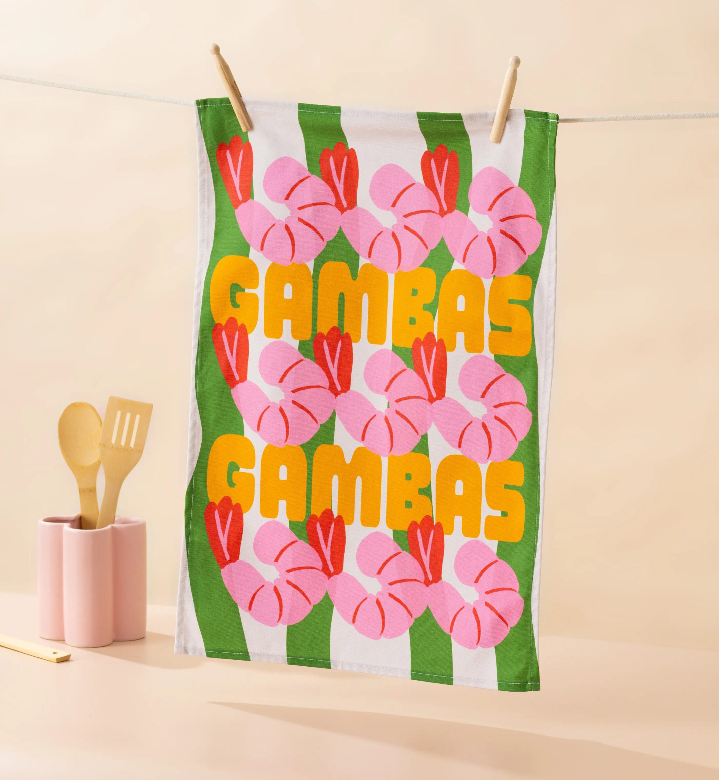 Donnez du peps à votre cuisine avec ce joli linge de cuisine « Gambas » de la créatrice Maddison Ball ! Ce torchon coloré apportera non seulement une touche de couleur à votre cuisine, mais rendra aussi la vaisselle un peu plus amusante. Dites adieu à l’ennui et bonjour à la fantaisie avec cet ajout original à vos essentiels de cuisine. Idéal comme cadeau à apporter chez des amis. Fabriqué au Royaume-Uni, 100% coton.