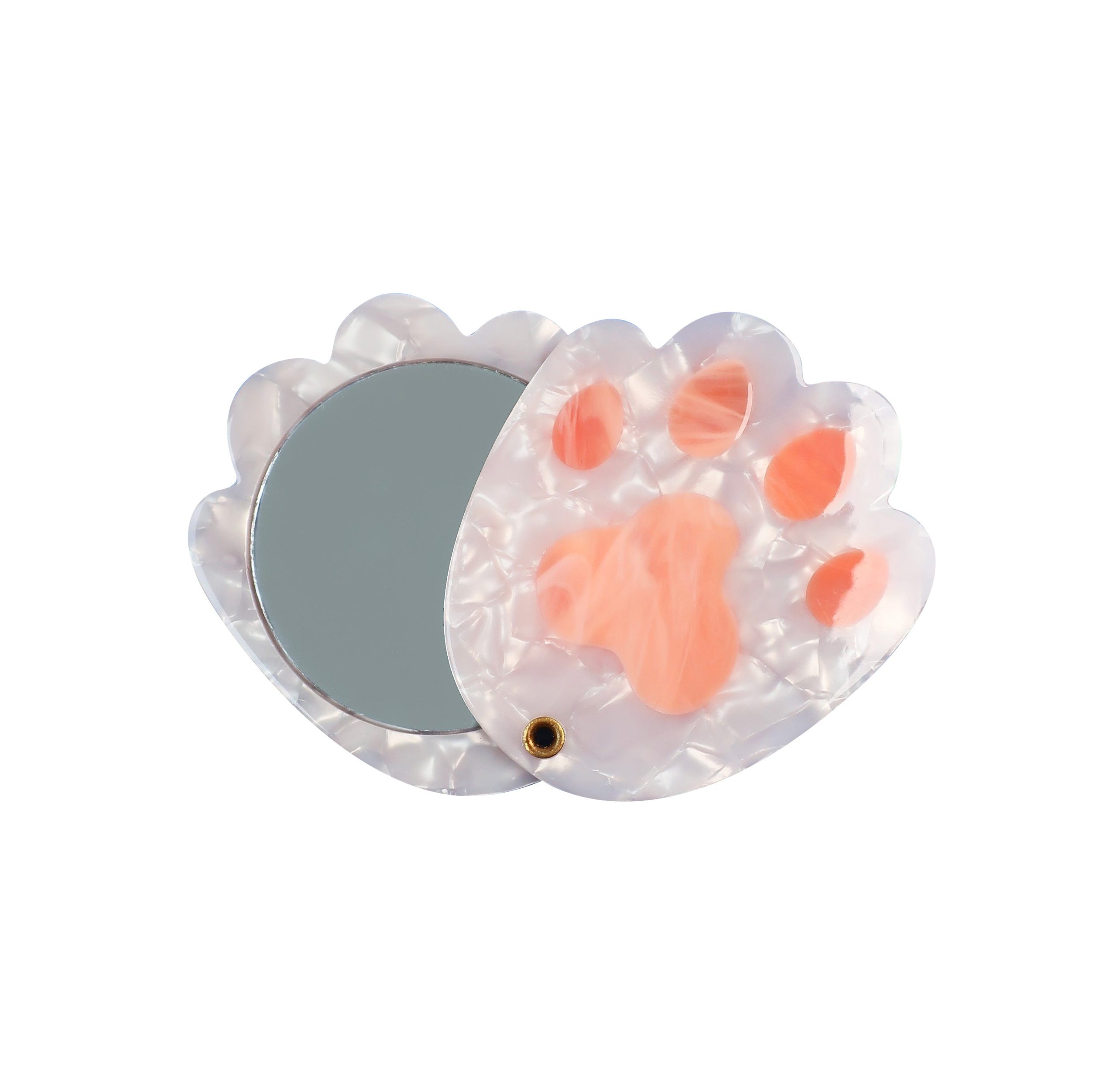 Youpi, un joli miroir de poche de la joyeuse marque Coucou Suzette ! Un miroir en forme de petite patte de chat trop mignonne avec ses coussinets roses. Idéal dans son sac pour checker sa frimousse et être sûr(e) de ne pas avoir de bout de salade coincé entre les dents… Fabriquée en acétate de cellulose.