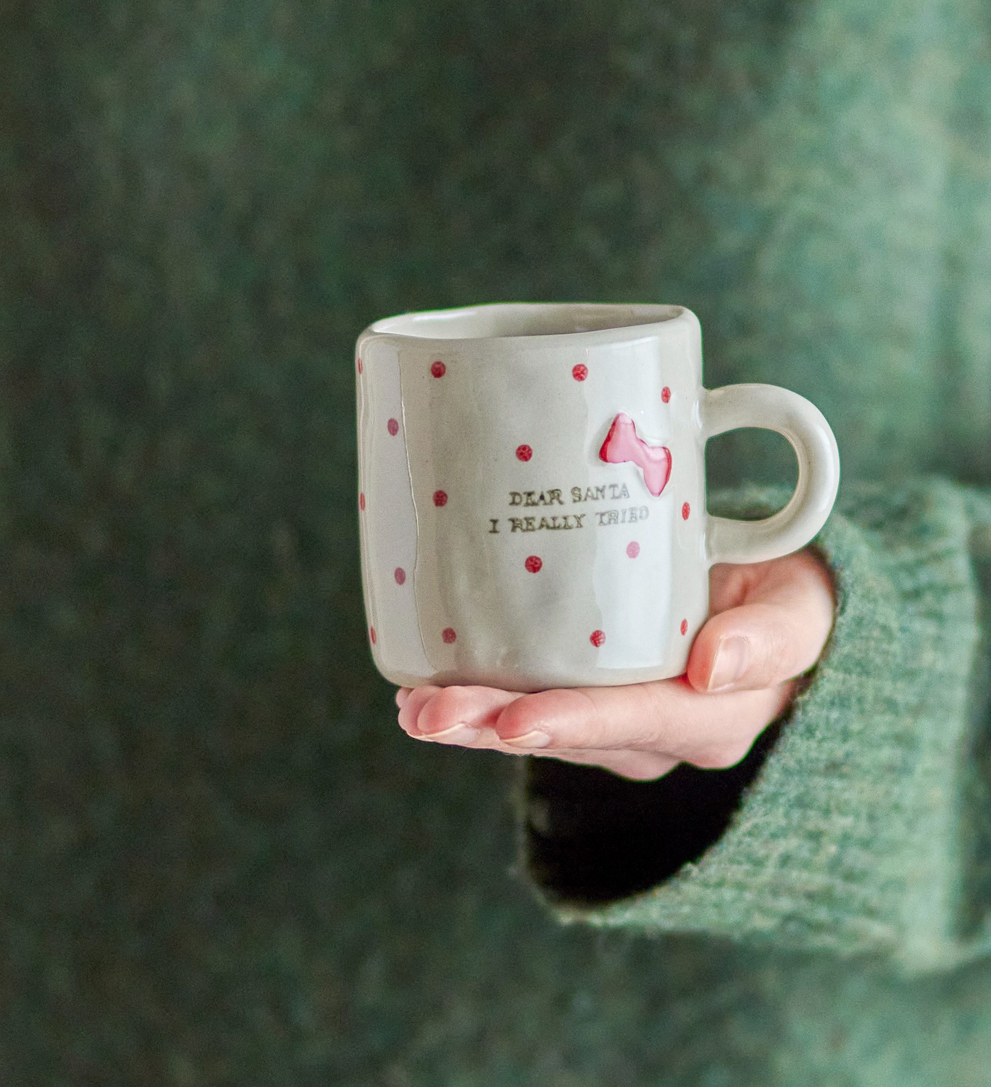 On craque sur cette adorable petite tasse Christy de la marque danoise Bloomingville ! Avec son texte rigolo « Dear Santa, I really tried ». Traduction: « Cher Père Noël, j’ai vraiment essayé » (sous-entendu essayé d’être sage cette année). Un mini mug parfait pour une pause thé ou café bien méritée en période de Noël avec son joli noeud rouge. Contenance: 230ml.