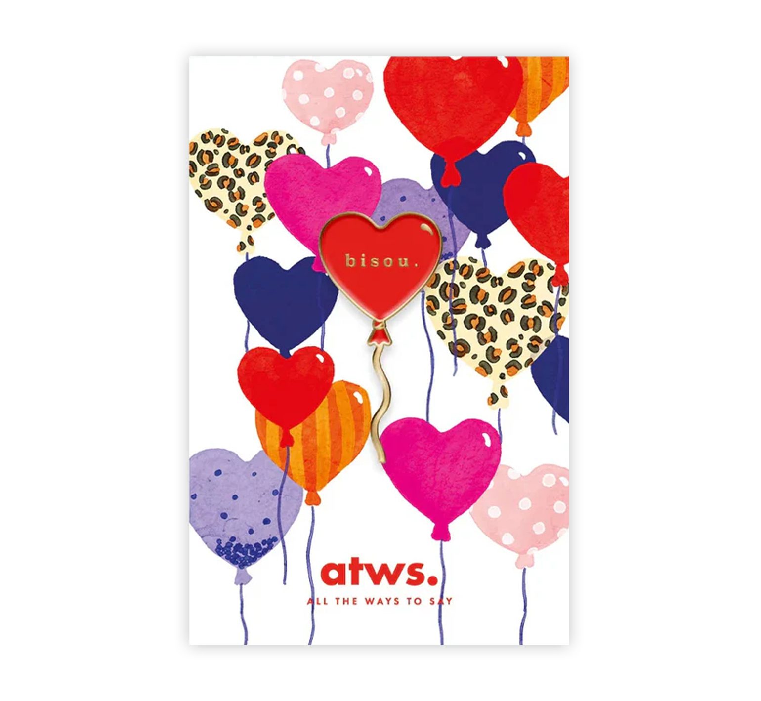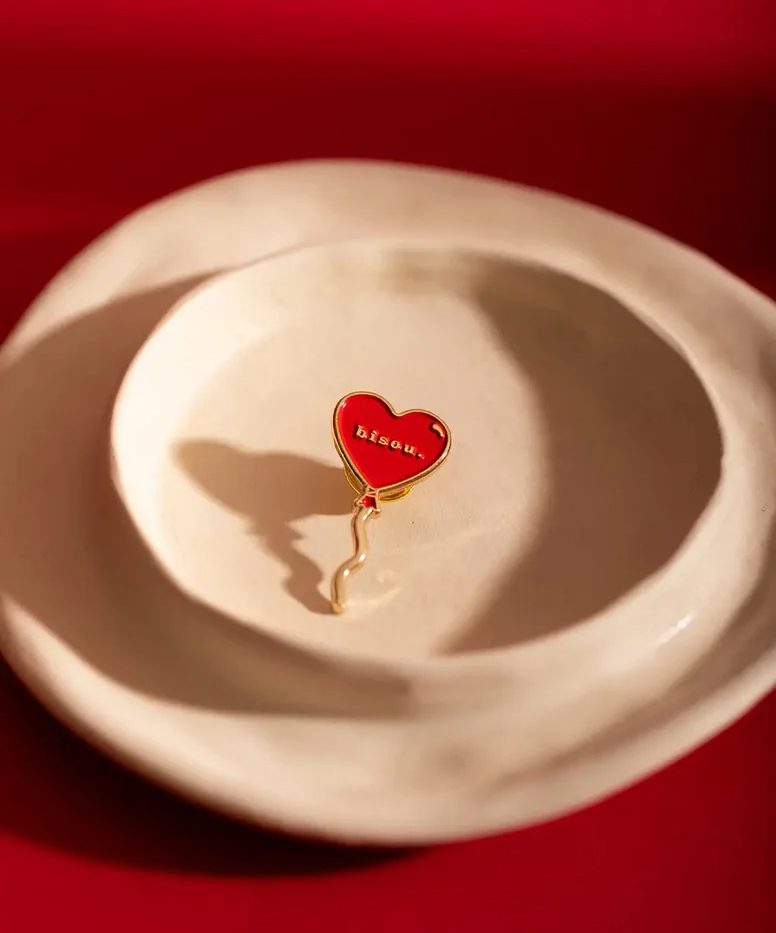 On craque pour le bel univers de la marque française All the Ways to Say ! Ce pin’s en forme de ballon « Bisou » est un accessoire adorable et original ! Il habille manteaux, pulls, veste en jean, sacs… À collectionner et arborer sans modération. Ce petit pin’s est épinglé sur une carte illustrée qui en fait une jolie idée de cadeau pour un proche. Attache en métal de type « papillon » au dos.