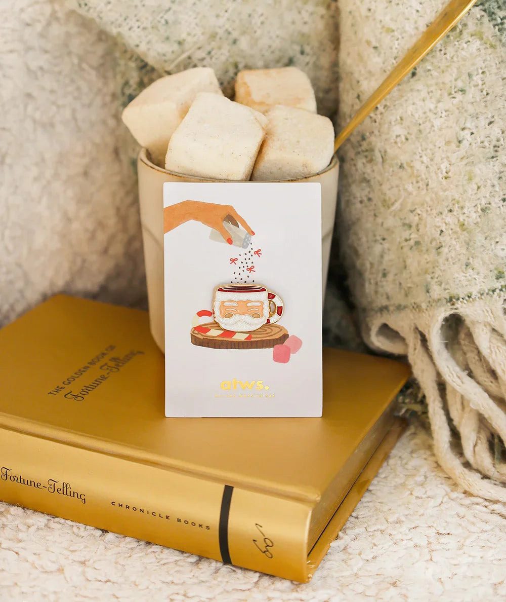 On craque pour le bel univers de la marque française All the Ways to Say ! Ce pin’s « Santa Cup » est un accessoire adorable et original pour toutes les personnes qui adorent Noël et les petits accessoires qui vont avec ! Il habille manteaux, pulls, veste en jean, sacs… À collectionner et arborer sans modération. Ce petit pin’s est épinglé sur une carte illustrée qui en fait une jolie idée de cadeau pour un proche. Attache en métal de type « papillon » au dos.