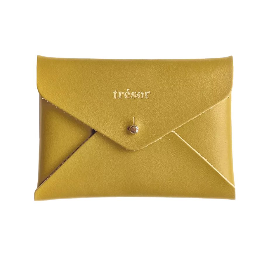 Ce porte-monnaie à été pensé pour accueillir vos pièces, vos billets mais aussi vos différentes cartes bancaires (jusqu’à 10 cartes!). Cette petite pochette en cuir marquée du petit mot « Trésor » en dorure est idéal pour offrir à une copine ou à garder pour soi.