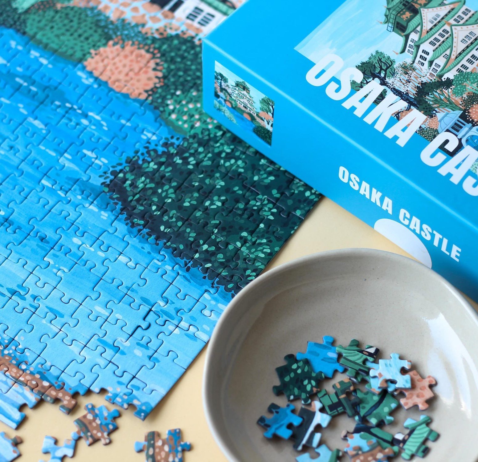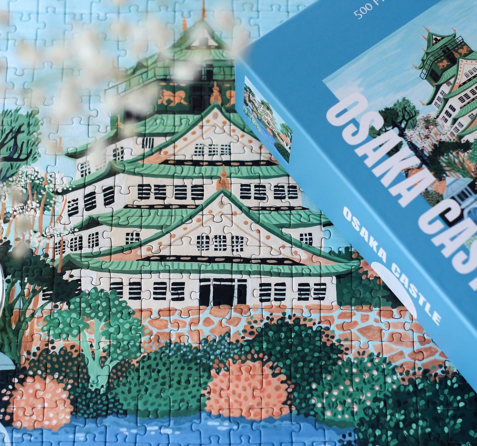 On craque complètement pour les magnifiques puzzles de la marque Piecely qui travaille avec des artistes talentueux partout dans le monde ! Laissez ce puzzle de 500 pièces « Château d’Osaka » vous faire découvrir la majestueuse forteresse japonaise dans des couleurs claires et apaisantes, créant une atmosphère presque féerique. Profitez d’un moment de repos, une tasse de thé bien chaude dans une main et les pièces du puzzle dans l’autre. Les puzzles reviennent en force ces derniers temps: c’est une activité reposante qui nous permet de se couper du monde le temps d’un instant… Après l’avoir fini, libre à vous de le défaire, le prêter ou mieux encore, l’encadrer. Fabriqué de manière responsable en EU (Turquie) et en papier recyclé (packaging sans plastique).