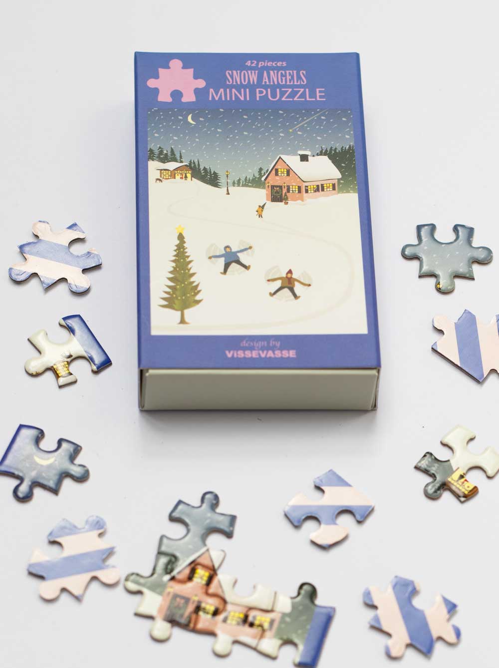 On aime l’univers minimaliste de la marque danoise ViSSEVASSE. De la jolie papeterie en passant par de magnifiques puzzles, vous trouverez sûrement votre bonheur. Ici, le mini puzzle de 42 pièces « Snow angels » est idéal pour passer un moment rempli de poésie. Les puzzles reviennent en force ces derniers temps: c’est une activité reposante qui nous permet de se couper du monde le temps d’un instant… Après l’avoir fini, libre à vous de le défaire, le prêter ou mieux encore, l’encadrer ! Ce produit est certifié FSC® (papier provenant de forêt de source renouvelable).