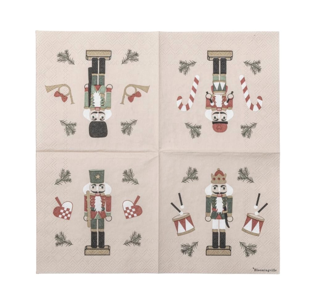 Ces jolies serviettes en papier signées Bloomingville complèteront à merveille votre table pour Noël ! Adorables avec leur motif imprimé de casse-noisettes colorés. Chaque paquet contient 20 petites serviettes en papier, qui apporteront l’esprit de Noël à votre table à coup sûr. Taille entièrement dépliée: 25×25 cm.