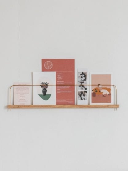 Avec cette étagère Super-Poses, vous pourrez exposer vos plus belles photos, illustrations et autres souvenirs. Changez votre décoration facilement plutôt que de la figer dans un cadre ! Bien pensé, la hauteur de la barre de laiton maintient différents formats de photos ou illustrations et la fixation (grâce à des clous en laiton fournis) est simplifiée. Pour vos souvenirs, pour vos photos, pour vos cartes postales, pour vos polas… Bref, pour vos superbes poses !