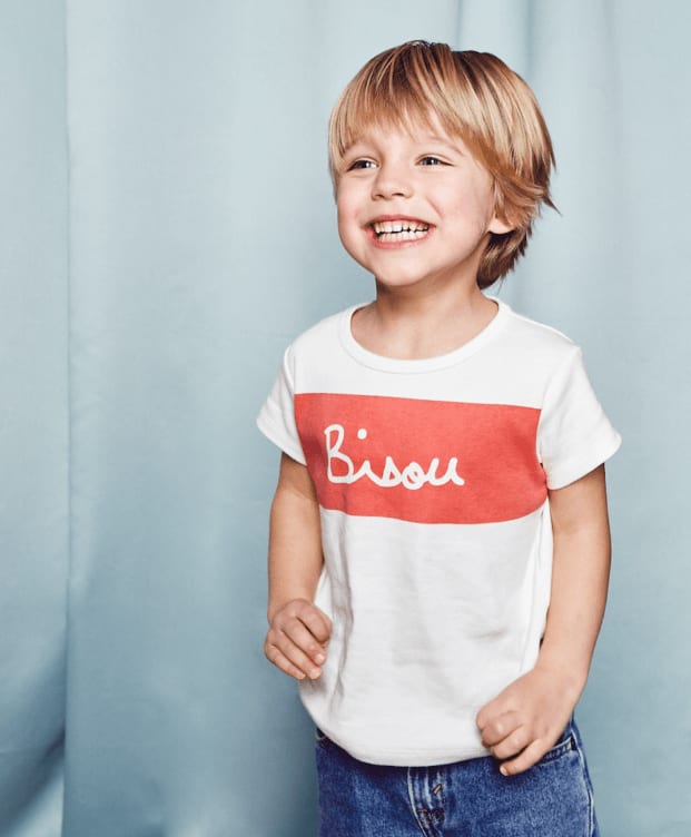 On craque sur tous les articles Bisou de Mathilde Cabanas ! Le t-shirt big Bisou, unique et iconique, pour tous les kids boys and girls de 2 et 6 ans. On adore son look sportswear vintage et son maxi Bisou, étendard du love et du cool. Une super idée de cadeau pour votre nièce, votre petit-fils, ou simplement pour chouchouter votre bout de chou adoré ! 100% coton bio et made in Portugal.