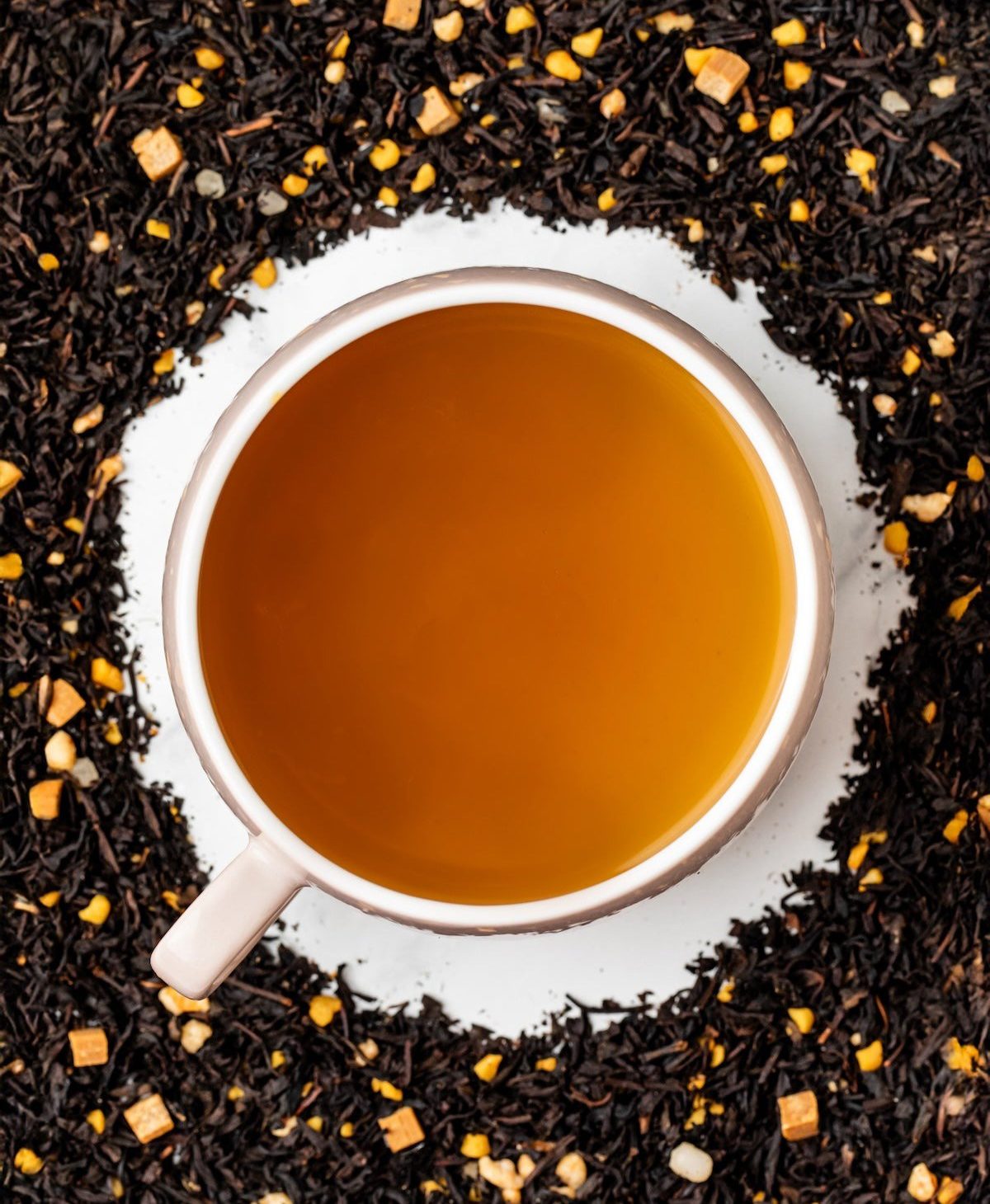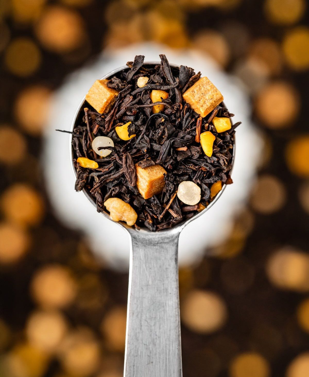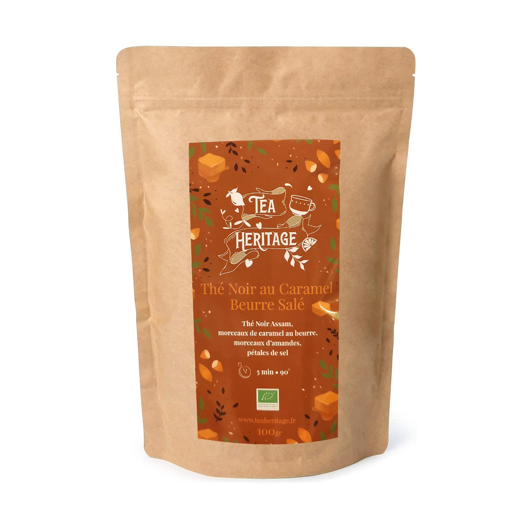 Ce délicieux thé noir bio « Caramel beurre salé » est un mélange au goût intense de caramel fondant associé aux notes profondes du thé noir Assam: une boisson irrésistiblement gourmande ! Les éclats d’amande et la touche subtile de sel viennent parfaire cet équilibre sucré-salé, pour une pause délicieusement réconfortante. Ce paquet contient 100g de thé en vrac bio. Ingrédients: thé noir Assam, morceaux de caramel au beurre, morceaux d’amande, pétales de sel.